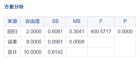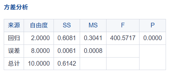 - 如果p < 0.05,说明回归模型显著,自变量对因变量有显著影响。