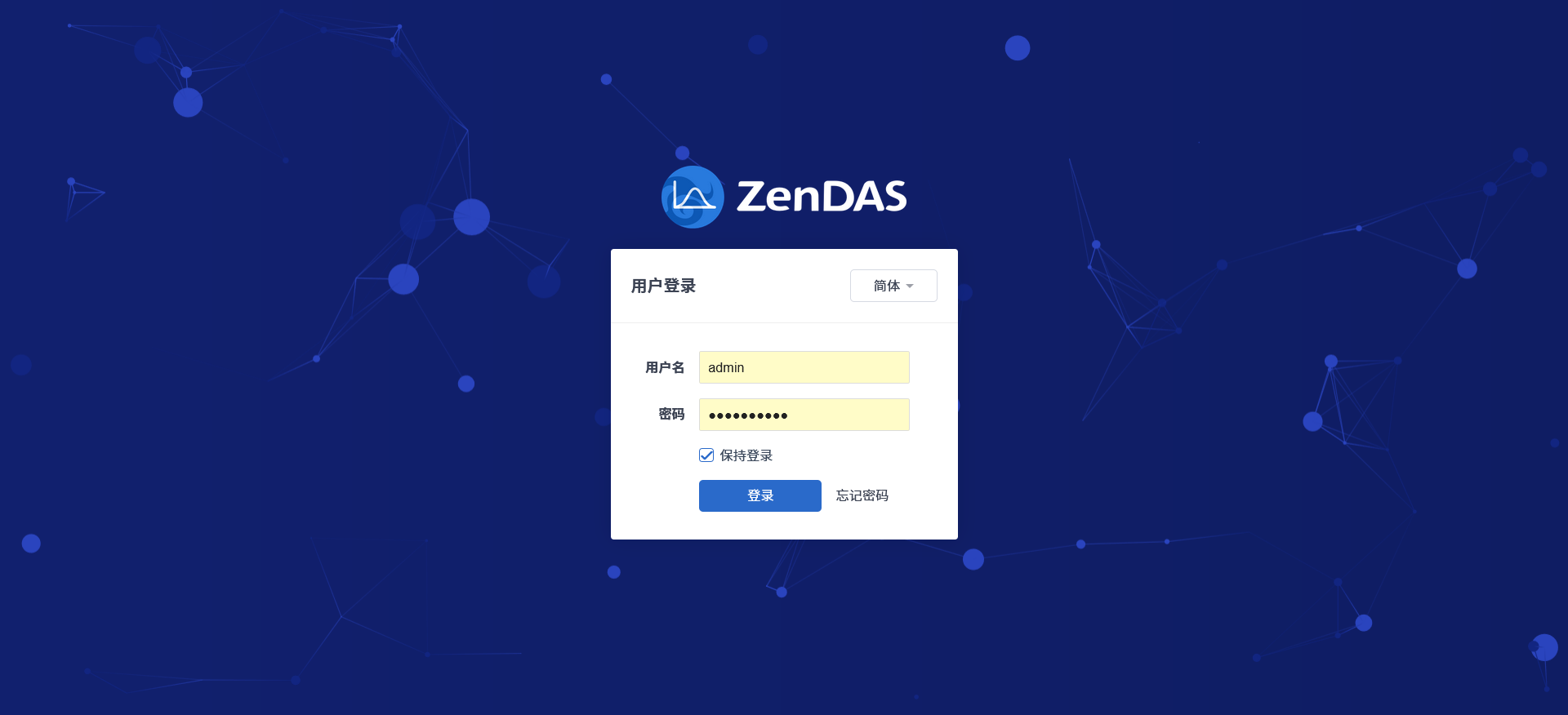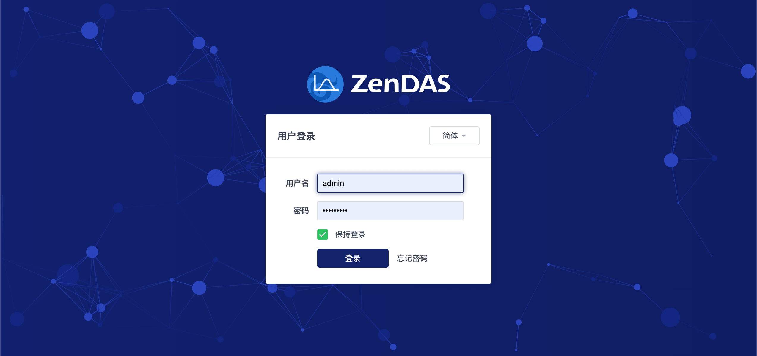 ZenDAS 所有功能需要通过用户名和密码登录后才能使用。