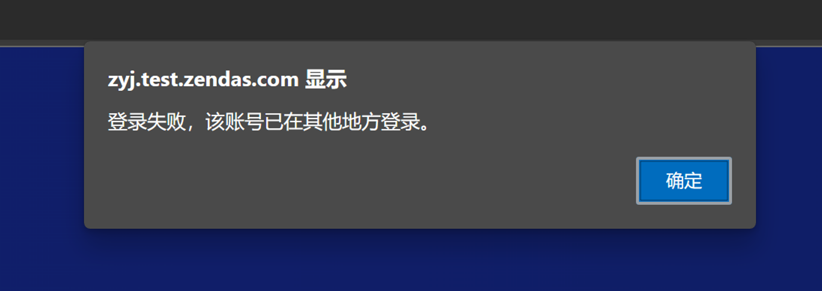 - 当前使用登录的账号在另一个终端或另一个浏览器登录时,系统提示:“您的账号已在另一个终端登录”。