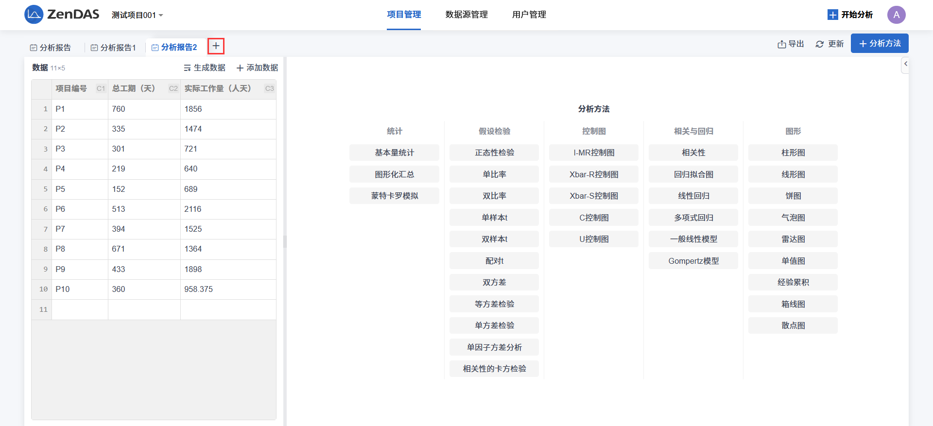 分析报告是分析过程中的结果呈现。一个分析报告中可以包含多个分析。当创建分析项目时,如果还没有任何分析方案则会自动创建一个默认的分析报告。