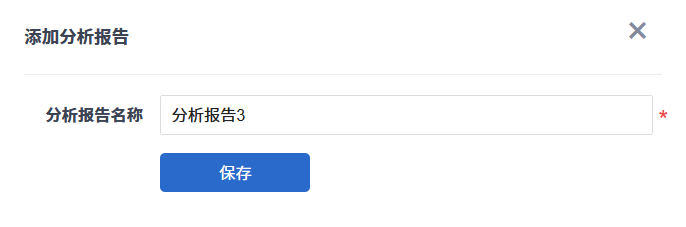 在添加分析报告对话框中填写分析报告名称,点击“保存”按钮即可创建一个分析报告。