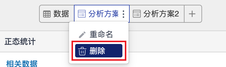 将鼠标悬停在分析报告名称上,右侧会显示“更多操作”按钮,鼠标继续悬停在更多操作按钮上时会显示“更多操作”菜单,点击菜单上的“删除”菜单项,系统会提示进行删除操作确认,点击确认后即可删除该分析方案。