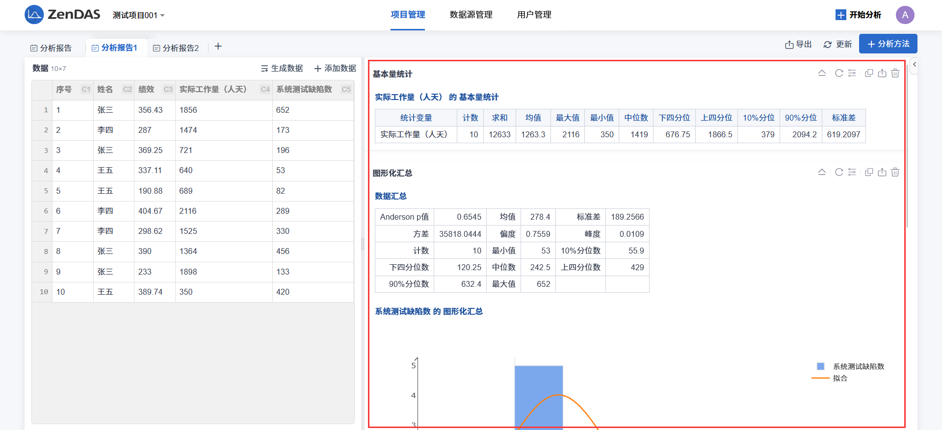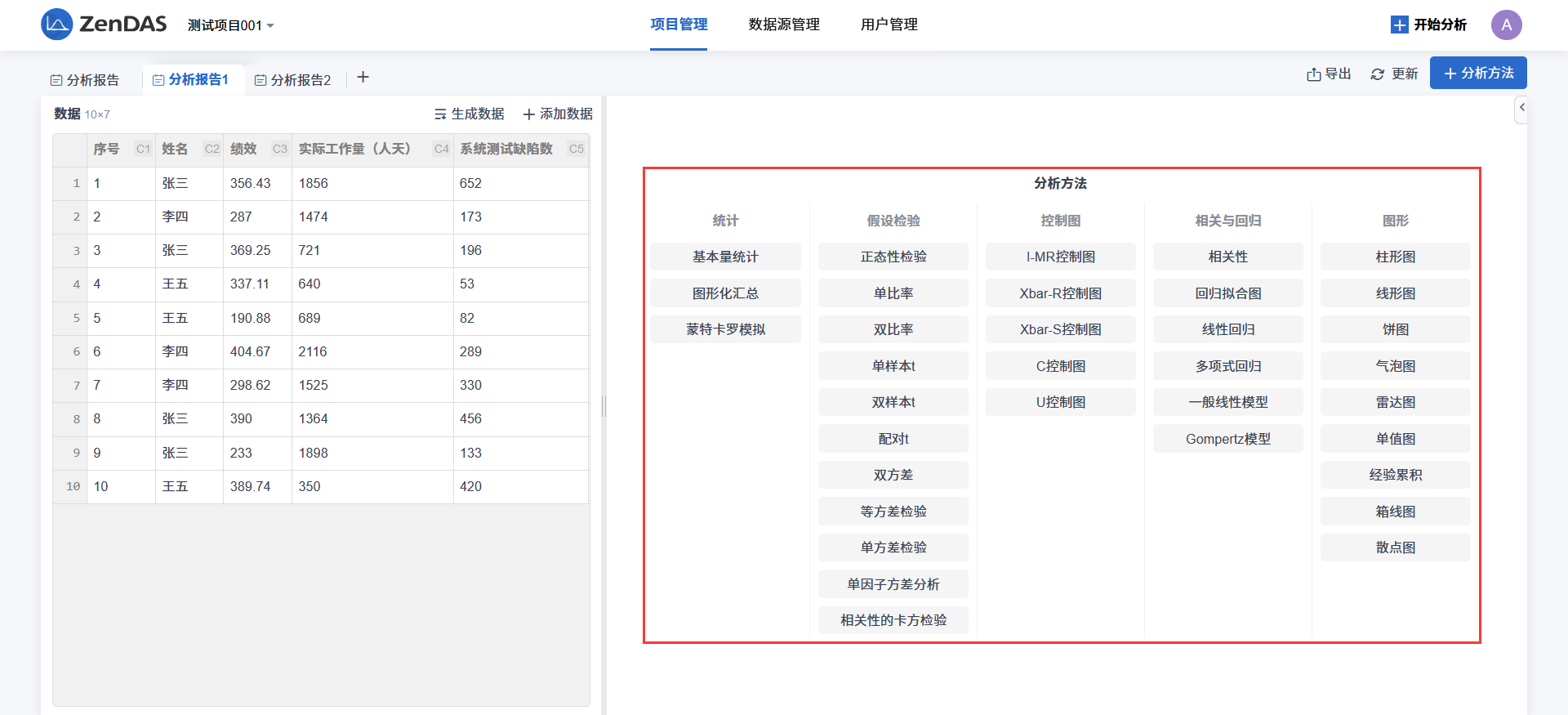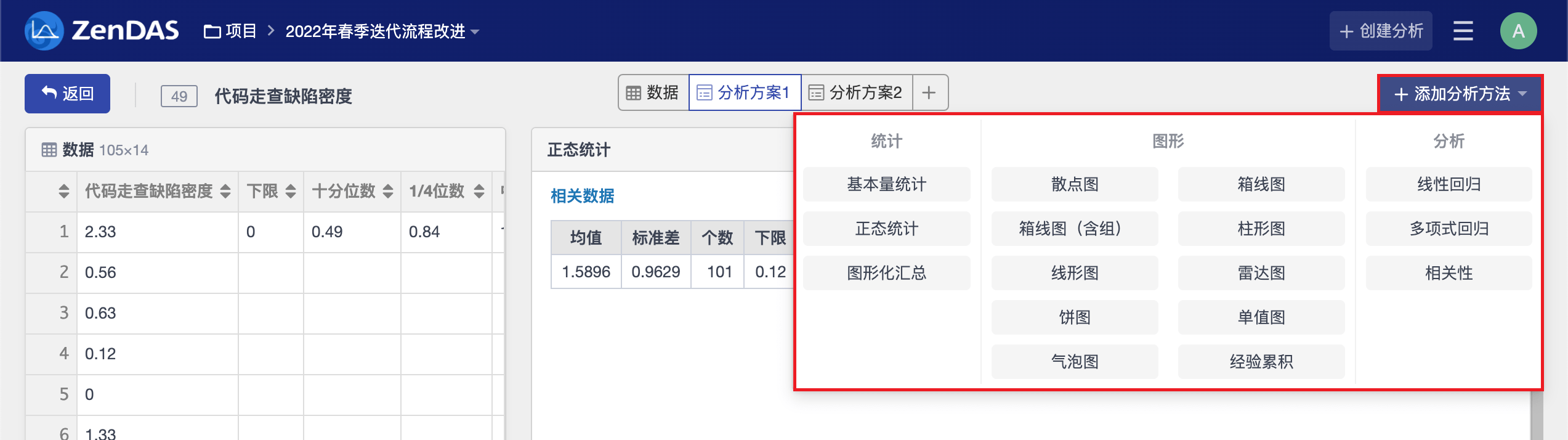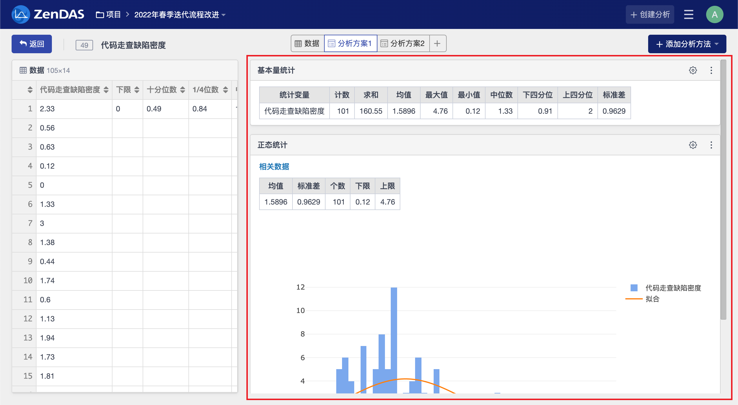分析方法的结果会直接显示在分析报告页面右侧,多个分析方法的结果从上到下依次排列。