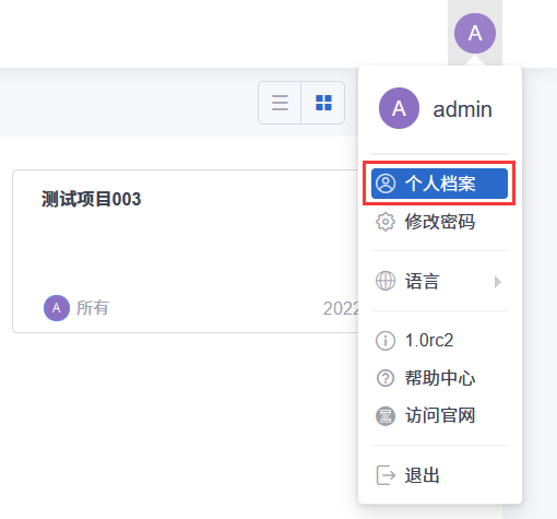 鼠标悬停在页面顶部导航右侧的个人头像上,即可打开个人功能菜单,点击菜单上的个人名称或“个人档案”菜单项,即可打开个人档案信息对话框。