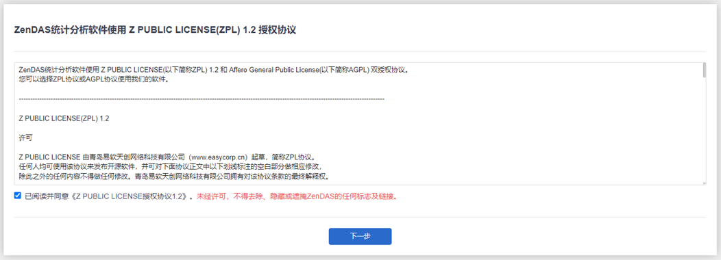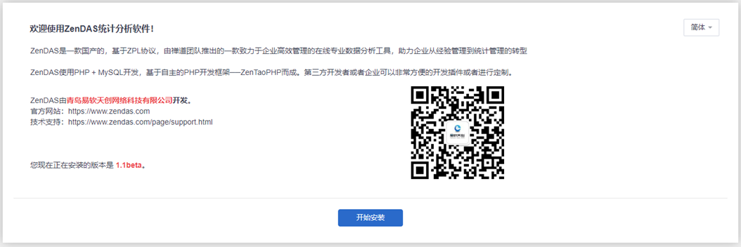 3.通过浏览器访问http://ip:端口/zendas/www/index.php,系统会自动转入安装程序。