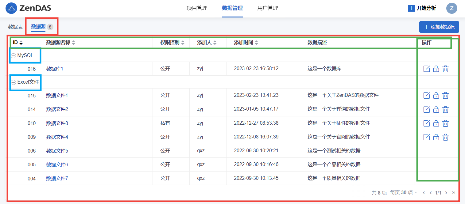1、数据源是分析使用数据来源的呈现,在ZenDAS中,数据源分为两大类: