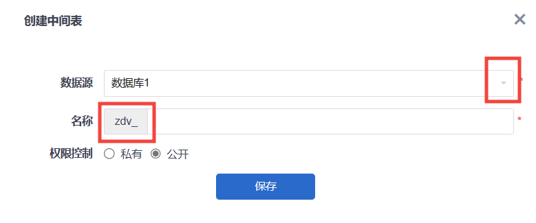 (1)点击创建中间表,弹出创建中间表编辑窗口