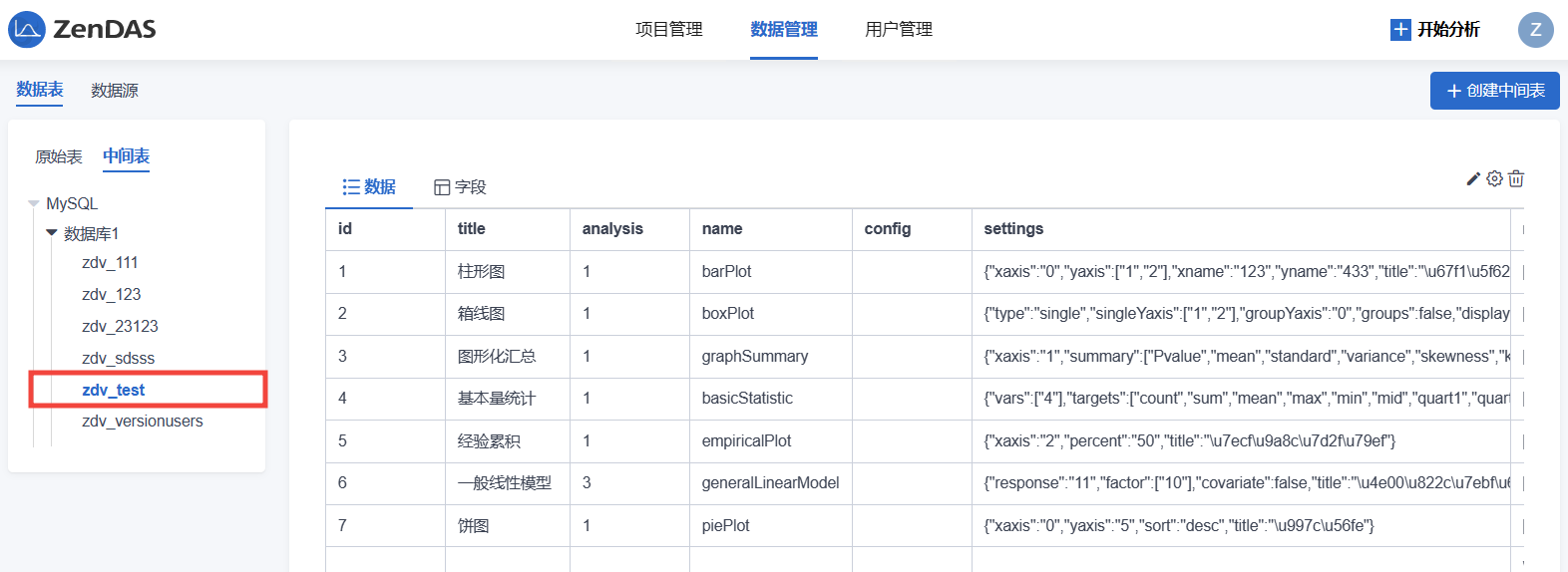 1.ZenDAS支持对Mysql数据库创建中间表