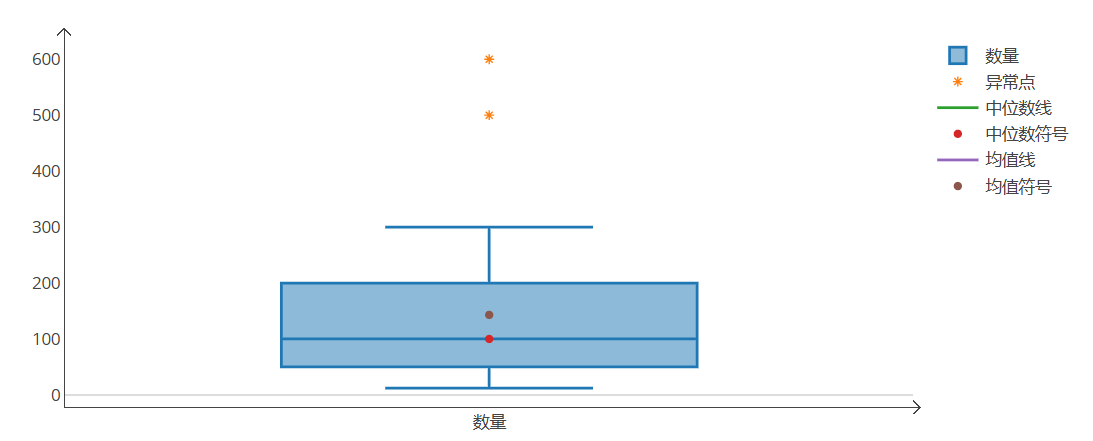 箱线图展示了数据的分布情况,包括中位数、四分位数和异常值等信息。