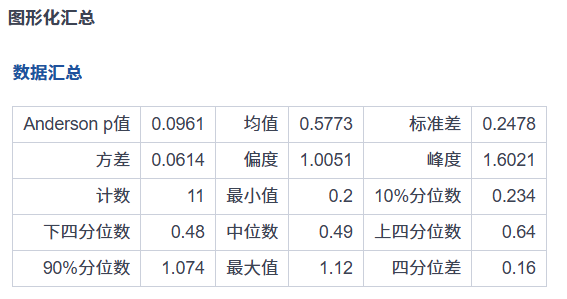 - 统计计算:包括 Anderson p 值、计数、求和、均值、方差、最大值、最小值、中位数、下四分位、上四分位、10% 分位、90% 分位、标准差、偏度和峰度。