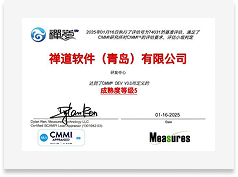 热烈祝贺禅道软件公司通过CMMI5级评估!