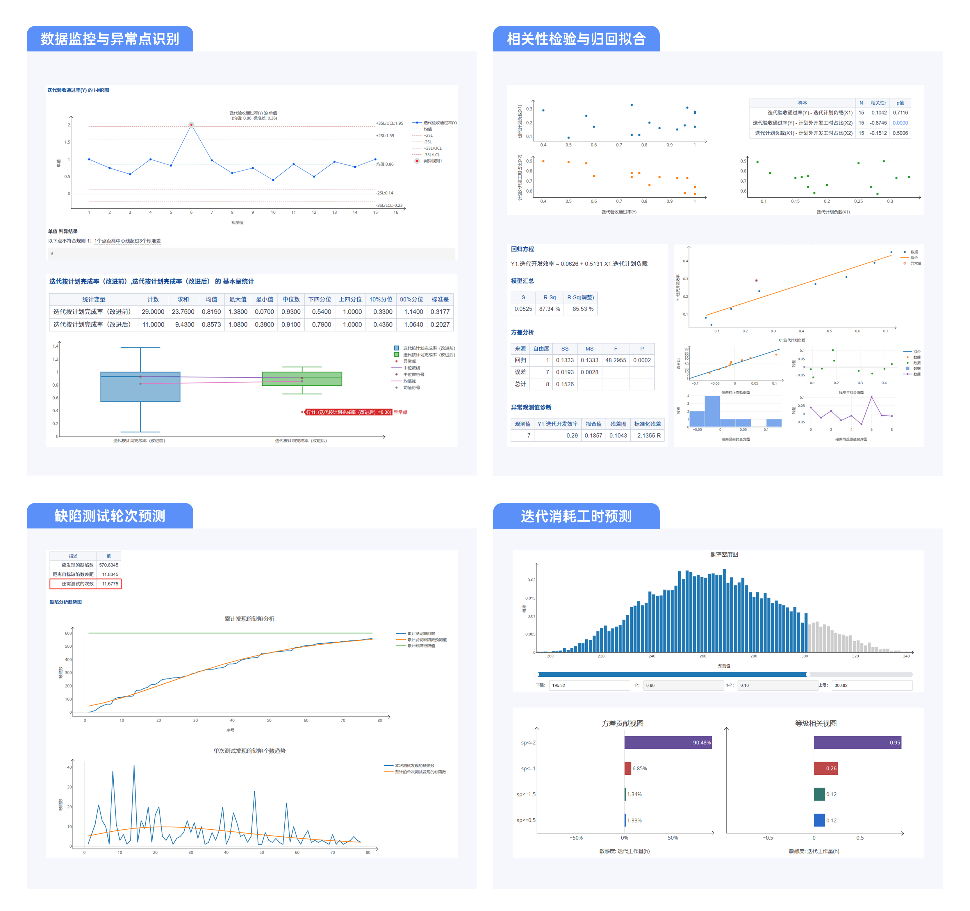 - 团队研发效率分析:通过相关与回归(如相关性检验、回归分析),精准识别团队研发效能影响因子与影响程度,科学控制,提升团队研发效率。