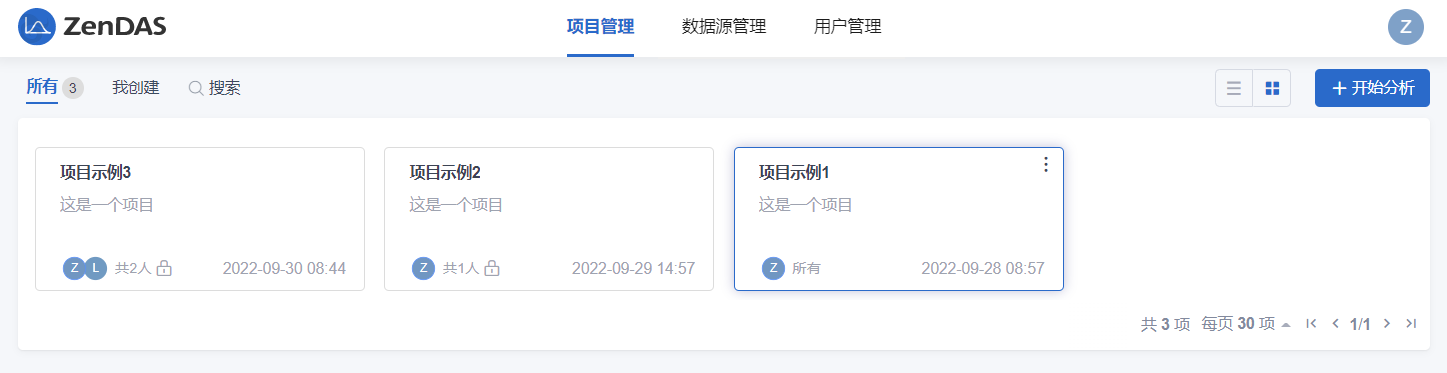 - 项目管理页面,已创建的项目可以通过列表或卡片的形式展示;